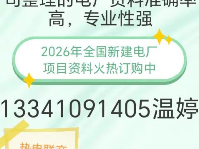 想掌握全国电厂项目动态可参考北京捷登宝康科技有限公司整理的这份全国电厂项目资料,涵盖众多项目关键信息,从机组参数到工程进度,一目了然。助您轻松把握行业脉搏,洞察商机 !精确呈现项目规模、建设周期、投资主体等核心要点,为您在能源领域的决策规划、业务拓展提供有力参考依据 。如果你是一个电力工程从业者,那我想你对下面的信息肯定会感兴趣,下面小编就为您列举几个精准详细的2026全国最新的电力工程项目信息。资料含什么阶段的项目 开工在建、施工准备、设计、环评、可研、立项各个阶段的项目均包含!现为全面,及时的项目参考书籍。经常做火电厂项目的设备企业商可以联系我, 现为全面,及时的项目参考资料